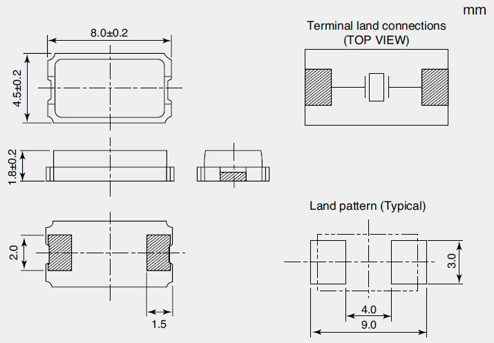 NDK壓電晶體,晶體諧振器NX8045GB,石英水晶振子,貼片石英晶振最適合用于車載電子領域的小型表面貼片石英晶體諧振器.也可對應有高可靠性要求的引擎控制用CPU的時鐘部分簡稱為時鐘晶體振蕩器,在極端嚴酷的環(huán)境條件下也能發(fā)揮穩(wěn)定的起振特性,產(chǎn)品本身具有耐熱,耐振,耐撞擊等優(yōu)良的耐環(huán)境特性,滿足無鉛焊接的回流溫度曲線要求,符合AEC-Q200標準.