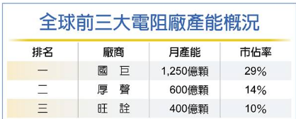 此次即將調(diào)漲的國巨是繼旺詮在1月宣布漲價(jià)后,2021年第二家針對(duì)代理商調(diào)漲的電阻廠商.資料顯示,旺詮為全球第三大芯片電阻廠,為奇力新下屬公司.旺詮產(chǎn)能分布在東莞及馬來西亞,目前月產(chǎn)能約360億顆.此前,旺詮科技在給客戶的通知函中表示,由于各項(xiàng)原材料價(jià)格上漲,訂單出貨比將近4倍之下,針對(duì)大中華區(qū)代理商調(diào)漲厚膜電阻價(jià)格15%,新價(jià)格于2月17日生效. 中時(shí)電子報(bào)稱,此次國巨漲價(jià),除了原材料如陶瓷基板、油墨、包材價(jià)格全面起漲之外,還受到另一家中國臺(tái)灣的電阻大廠產(chǎn)量銳減的情況持續(xù)惡化影響.該廠芯片電阻月產(chǎn)高達(dá)600億顆,產(chǎn)能排名高居全球第二,且近年擴(kuò)了不少小尺寸電阻產(chǎn)能.而2020年末,該廠發(fā)生"家變",產(chǎn)量銳減50%.
