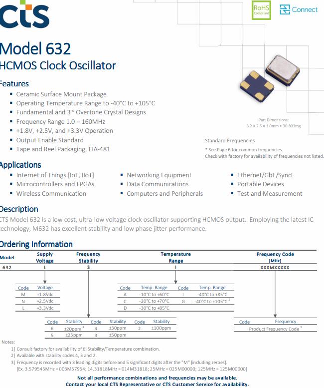 | 632L3I048M00000 | CTS-Frequency Controls | 632 | 48MHz | ±50ppm |