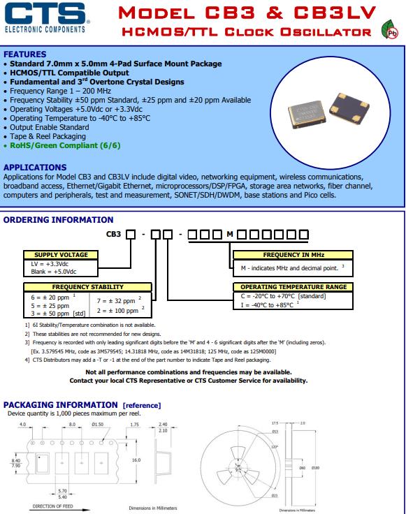 | CB3-3I-25M0000 | CTS-Frequency Controls | CB3 | 25MHz | ±50ppm |