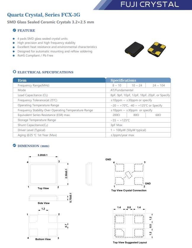 富士FujiCrystal晶振,FCX-3G車規(guī)晶振,汽車高溫控制模塊晶振