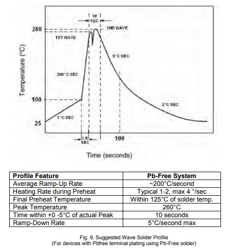 DiodesIncorporated提供了以下焊接工藝的一般熱分布圖圖9和10)