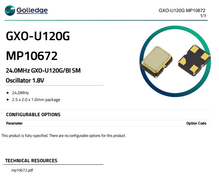 更多>>MP10672 2520 24M LVCMOS GXO-U120英國高利奇Golledge有源晶振