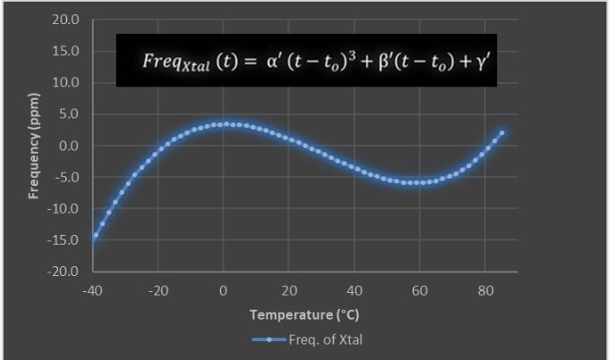 溫度和頻率偏差之間的關(guān)系可以進(jìn)口晶振使用3次多項(xiàng)式函數(shù)進(jìn)行近似計(jì)算.一個(gè)5th度函數(shù)也可用于更精確的曲線擬合.
