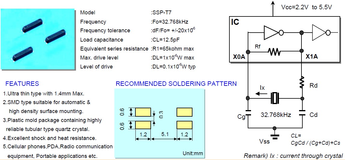 IC Maker IC name Quartz crystal CL(pF) Cg(pF) Cd(pF) Rd(kΩ)