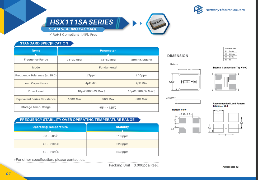 更多>>X1C032000B81H-DEHPV HSX111SA 1612 32M 8PF 10PP加高無源晶振