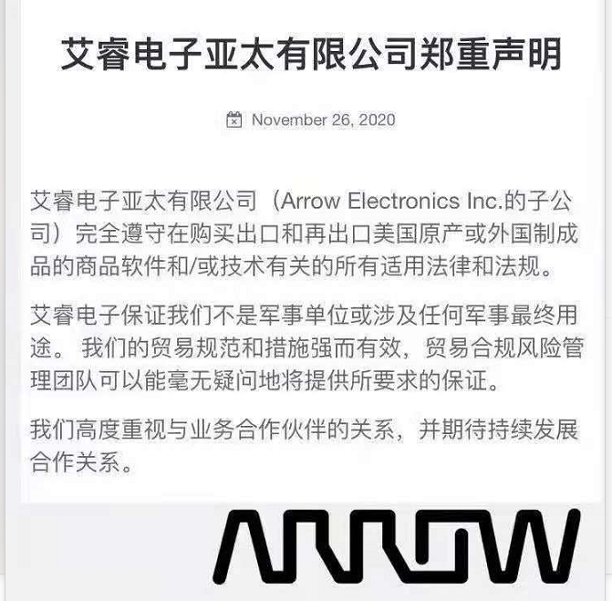 艾睿亞太在亞洲,在中國(guó)都是重要的IC和溫補(bǔ)晶振分銷(xiāo)商.美國(guó)重點(diǎn)關(guān)照艾睿,后面或針對(duì)大陸分銷(xiāo)代理商進(jìn)一步動(dòng)作,因?yàn)閲?guó)內(nèi)芯片進(jìn)出口多通過(guò)代理分銷(xiāo)商.
