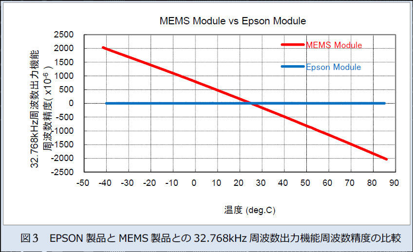 EPSON產品在-40~+85℃的溫度范圍能,高精度的頻率輸出的精度為±5×10-6(月差13秒),而MEMS產品頻率輸出的溫度校正,因為沒有相同的溫度范圍內±0.2%(月差86分)和大功率精度的偏差.因此MEMS產品的頻率輸出不能使用.